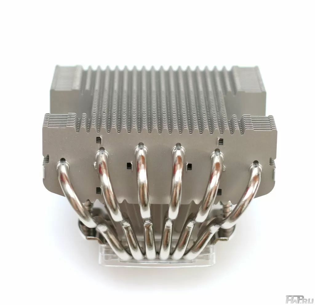 Как и в предыдущем NH-C12P, новый Noctua NH-C12P SE14 имеет пять С-образно изогнутых никелерованных тепловых трубок диаметром 6 мм, которые пронизывают три условные секции алюминиевых пластин.
