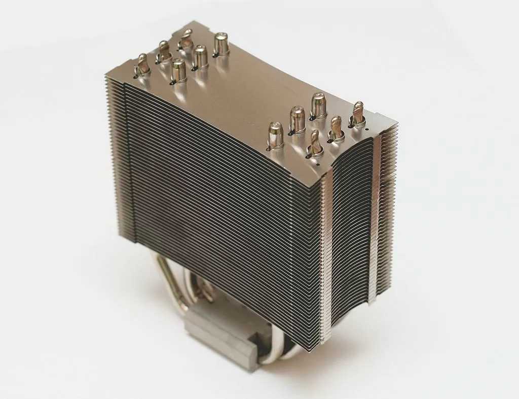 Сборка радиатора выполнена очень качественно. Аллюминиевые пластины, образующие радиатор, нанизаны на теплопроводящие трубки. Эти 6 трубок из никилерованной меди имеют U-образную форму. Thermalright Ultima-90 имеет возможность установки сразу двух вентиляторов. Но производитель почему-то не укомплектовал кулер дополнительными креплениями. Стандартная комплектация позволяет установить на радиатор только 90мм вентилятор в паре с 120мм. Для установки сразу двух 90мм или двух 120мм вентиляторов, вам придется делать крепления самому или заказывать их через интернет, что в принципе портит общее отличное впечатление о продукте.
