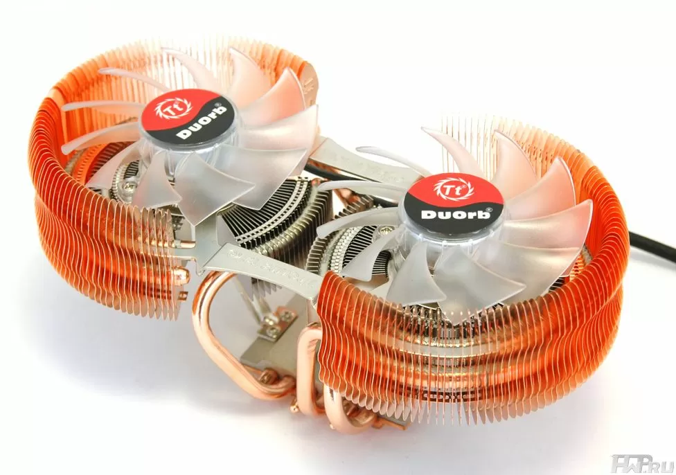 Конструкция радиатора достаточно необычна уже тем, что использует два вентилятора. Более того, кулер просто красив. Тонкие медные ребра придают неповторимый шарм любому продукту, призвание которого – охлаждать компоненты компьютера, так и с DuOrb – он очень привлекательный.