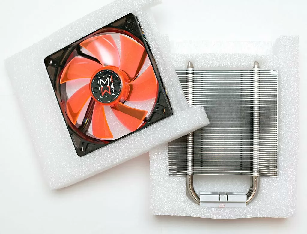 Спецификации Red Scorpion говорят о том, что он относится к кулерам средней тяжести. Алюминиевые ребра радиатора образуют башенную конструкцию. По краям ребра загнуты вниз, что придает радиатору повышенную жесткость конструкции. Через все тело радиатора проходят 3 медные трубки, диаметр которых равен 8 мм.