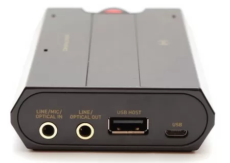 Сзади располагаются все оставшиеся порты и разъёмы, а именно: порт microUSB для подключения к ПК и зарядки, порт USB HOST для зарядки мобильных устройств и для работы в качестве USB АЦП, а также два 3,5мм (по совместительству оптические) аудио-порта, один из которых работает на вход (линейный/микрофонный/оптический), а другой – на выход (линейный/оптический). ЦАП представлен Cirrus Logic CS4398, а АЦП - Cirrus Logic CS5361. Опять же если кто не знает - это компоненты очень высокого качества.