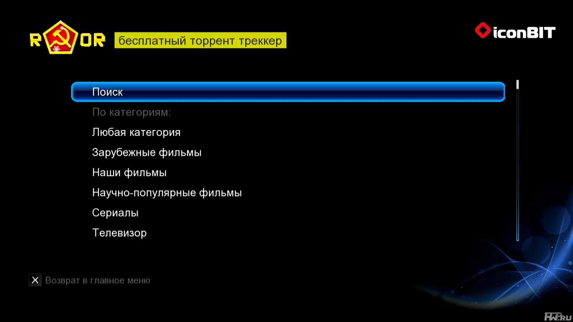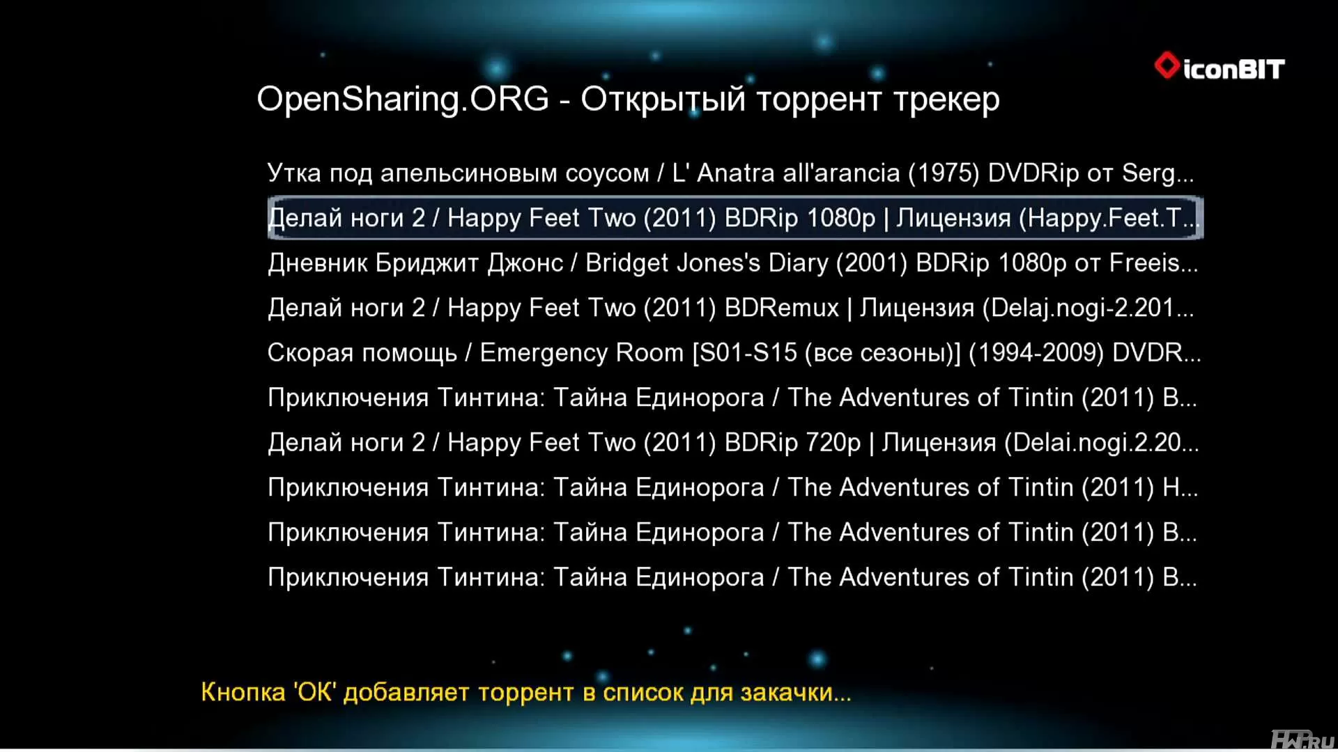На данный момент из поддерживаемых трекеров можно отметить "Rutor.org" и "OpenSharing.org". Разумеется, пополнение этого перечня - дело времени, мы уже представляем, как на официальном форуме iconBIT разрабочики прошивки принимают пожелания пользователей - "добавьте такой-то трекер, он хоть и малоизвестен, но я им часто пользуюсь". И ведь будут принимать - никуда не денутся.