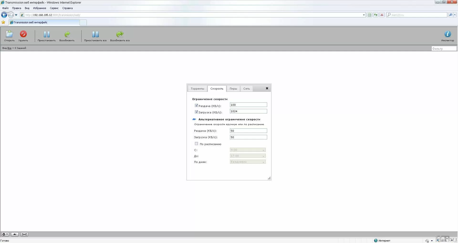 Причём, можно настроить регулировку скорости в соответствии с расписанием. Стандартный пример - ограничение скорости днём, чтобы торрент-качалка не занимала весь канал и сёрфинг с компьютера или ноутбука был комфортным. А ночью нормальные люди спят, а нормальные торрент-качалки работают на полную мощность.