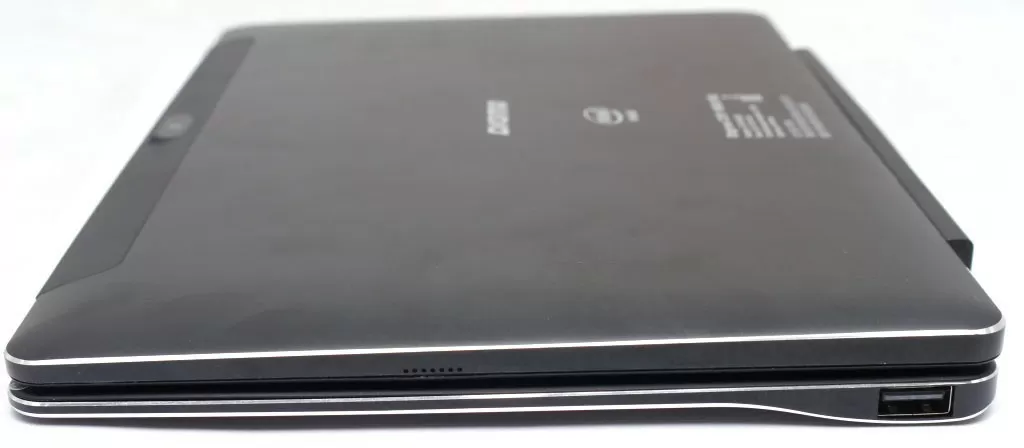 На правом торце планшета нет ничего, кроме решетки стерео-динамиков (такая же находится слева), а на клавиатуре - второй полноразмерный порт USB. Тот факт, что на самом планшете нет таких портов, немного расстраивает, так как без клавиатуры подключить USB-устройство можно только через переходник USB type C OTG, которого, к слову, в комплекте нет. С другой стороны, это позволило сохранить небольшую толщину планшета.