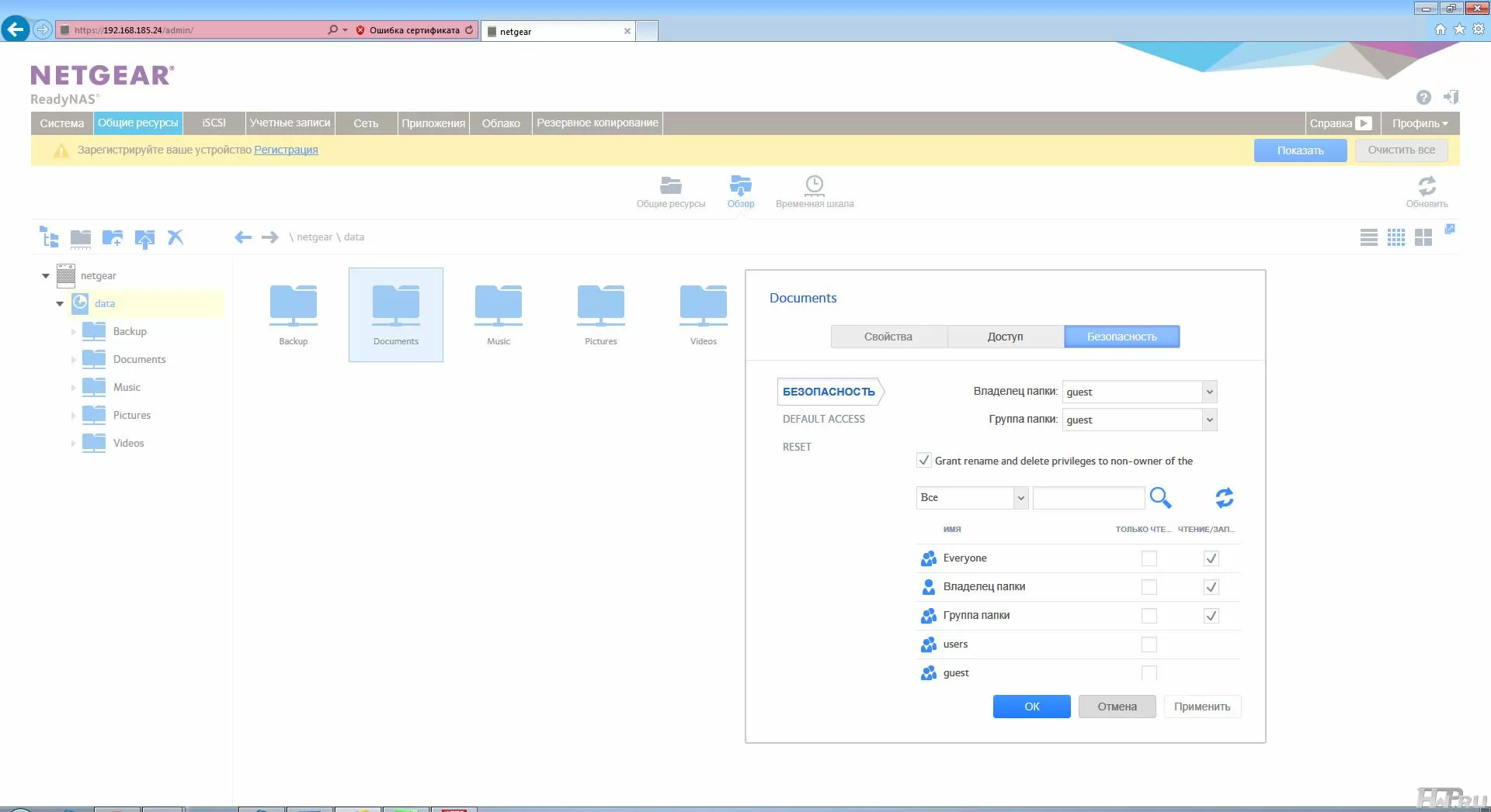Сетевое хранилище NETGEAR работает под операционной системой собственной разработки. На момент тестирования самая актуальная версия - 6.1.1. Надо признать, при всей простоте дизайна интерфейса (на фоне сильных конкурентов), управление хранилищем настолько простое, что не нужно тратить время ни на привыкание, ни на изучение. Минималистично, зато максимально понятно. Пробежимся по основным пунктам меню.
