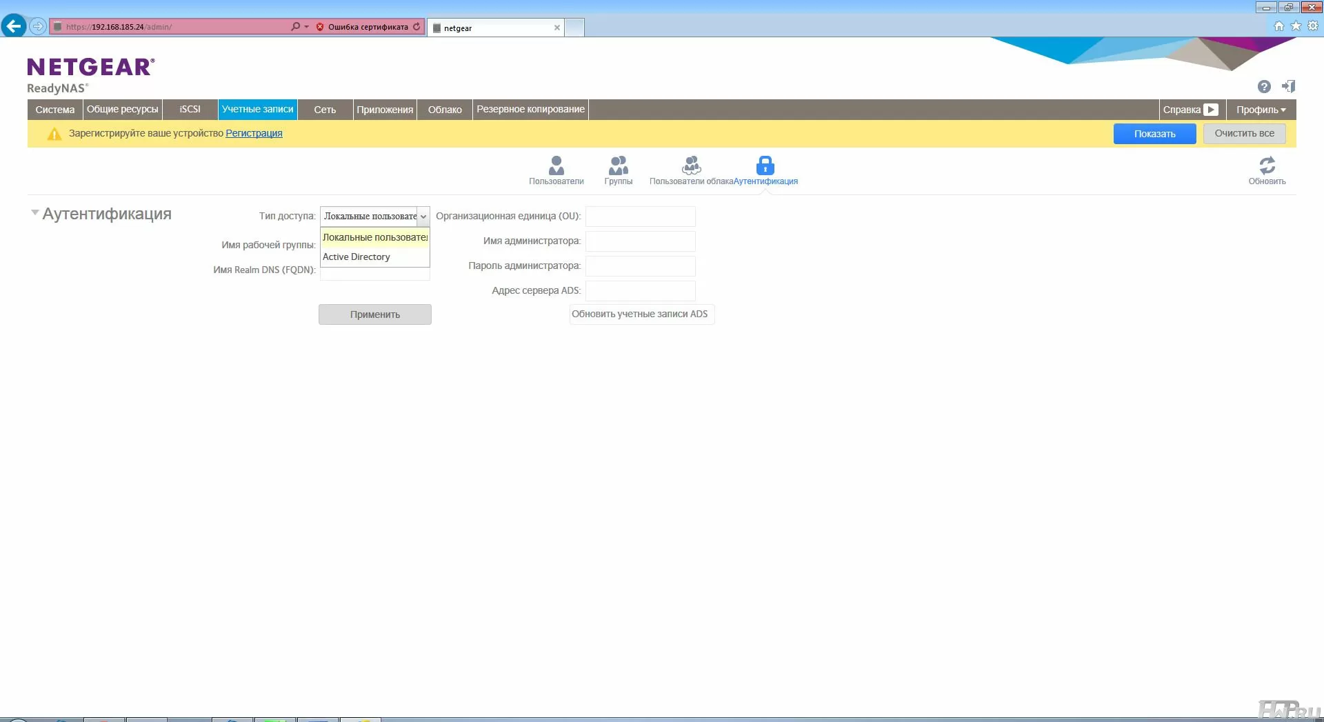 Функционал NETGEAR RN10400 можно расширять с помощью фирменных приложений NETGEAR. Правда, в отличии от конкурентов, тут процесс более запутанный. Для получения доступа к приложениям необходимо зарегистрировать хранилище и создать учётную запись на сайте genie.NETGEAR.com.