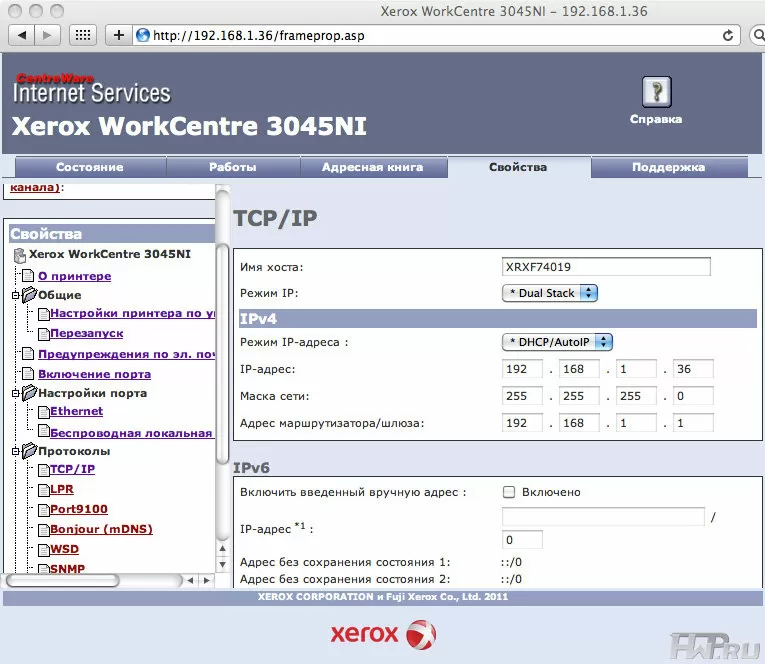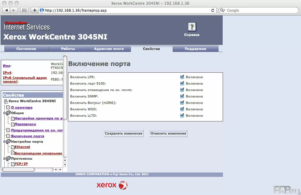 Следует отметить, что Xerox WorkCentre 3045NI поддерживает различные протоколы обмена данными, которые можно отключить в целях безопасности. А, например, SNMP позволит добавить принтер в список мониторинга большой корпоративной сети.