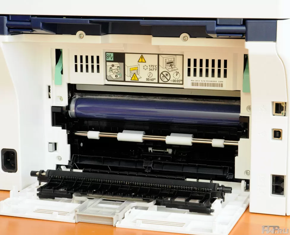 Достать застрявший в принтере лист бумаги вы можете как с фронтальной, так и с обратной стороны. Автоподатчик сканера так же просто открывается и вы можете достать лист вручную. К слову, если вдруг вы остановили сканирование с автоподатчика аварийно, нажав «стоп» или отключив питание, вам придется доставать лист вручную - прогнать документ через механизм и вернуть его вам МФУ не сможет.