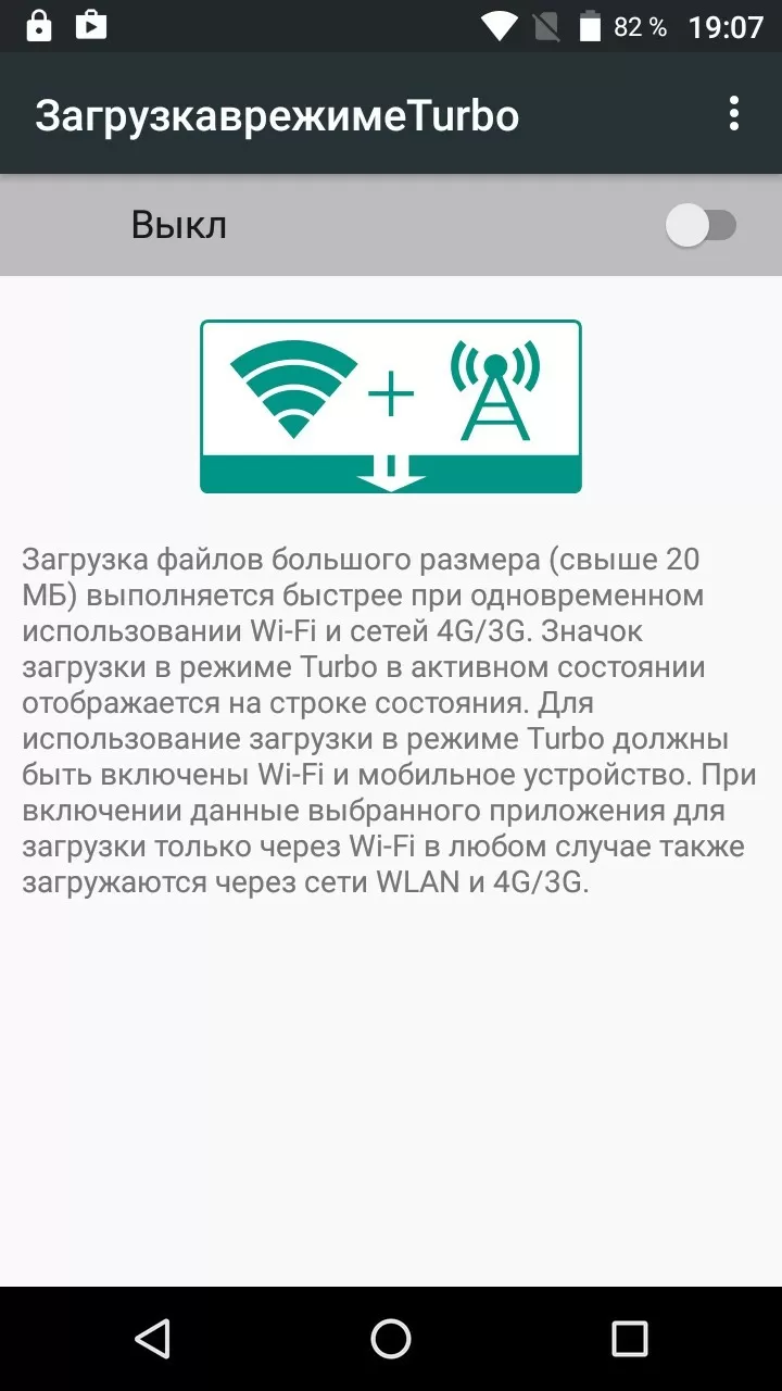 Как уже говорилось выше, в BQ Jumbo установлен Android версии 6.0. Производитель добавил несколько весьма практичных фич, например возможность загрузки больших файлов одновременно и по Wi-Fi и по 3G/4G. Будет полезно, например, в местах с небыстрым Wi-Fi. Также нам понравился режим одной руки, при включении которого цифровая клавиатура для набора номера уменьшается в размерах, благодаря чему набирать номер становится действительно проще. При этом блок клавиш можно перемещать вправо и влево, для правой и левой руки соответственно.