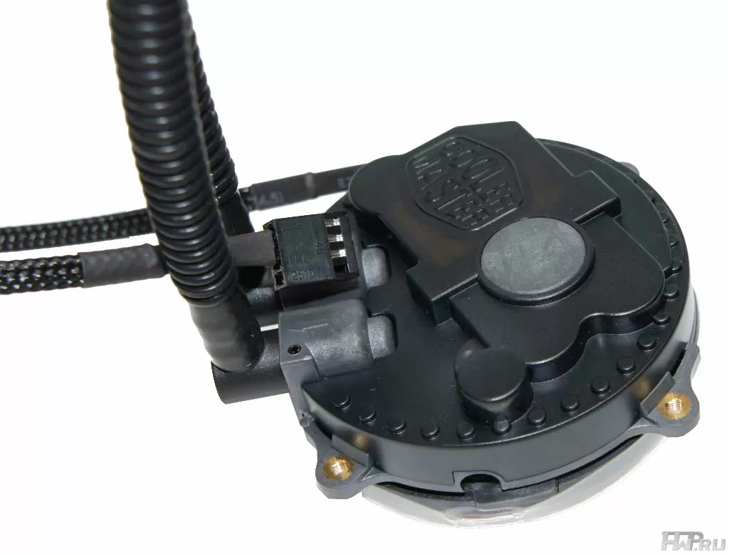 Водоблок настолько компактный, что сразу обращает на себя внимание. Именно в нём находится помпа, которая подключается к обычному 3pin разъёму. Энергопотребление помпы - 1,8Вт, работает она практически бесшумно (уровень шума меньше 25 дБ).