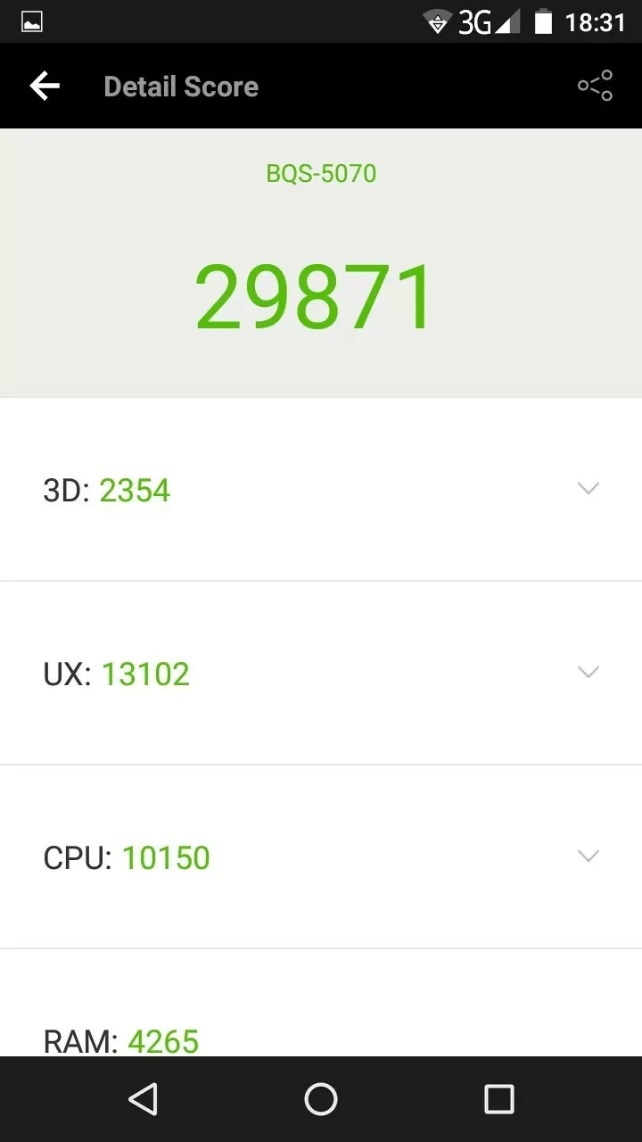 Что касается железа, то объём оперативной памяти составляет 2 Гб, объём встроенной - 16 Гб (пользователю доступно около 11 Гб). В качестве ЦП, как мы уже говорили в самом начале, выступает молодой MTK6737 о четырёх ядрах, работающих на максимальной частоте в 1250 МГц. Его производительность выше MTK6735 в первую очередь за счёт более мощного видеоускорителя Mali-T720 MP2. В синтетическом бенчмарке AnTuTu он набирает существенно больше своего предка - почти 30 тысяч баллов (вместо 24 тысяч при схожем разрешении и прочих аппаратных компонентах).