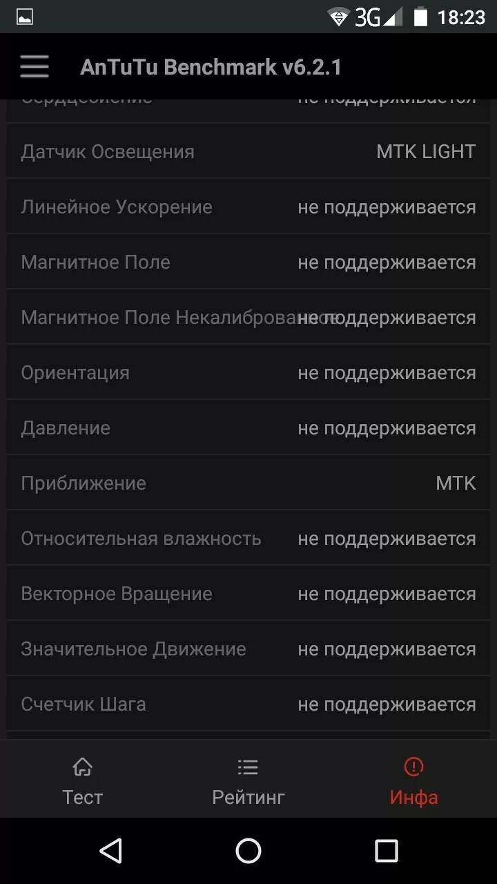 В остальном же каких-то претензий или замечаний нет. Набор датчиков - привычный для бюджетной модели, есть лишь джентельменский набор из датчика освещенности, приближения да акселерометра. Громкость обоих динамиков достаточная, про камеры можно особо не заострять внимания - их качество типично для данной ценовой категории. Про батарейку также особого нечего сказать - ёмкости в 2000 мАч хватит на сутки плотной работы, или на пару-тройку дней, если отключать сетевые интерфейсы и минимально пользоваться смартфоном.