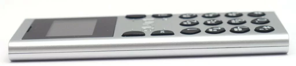 NanoPhone C легко помещается в кошелек средних размеров, и за счёт полноценных раздельных клавиш и вытянутой формы он очень удобен в использовании.
