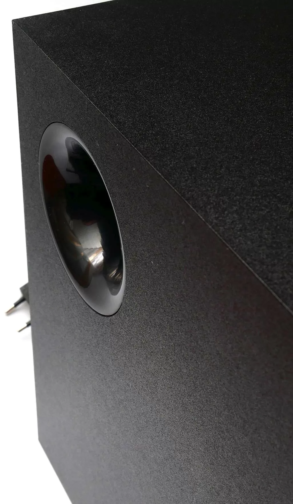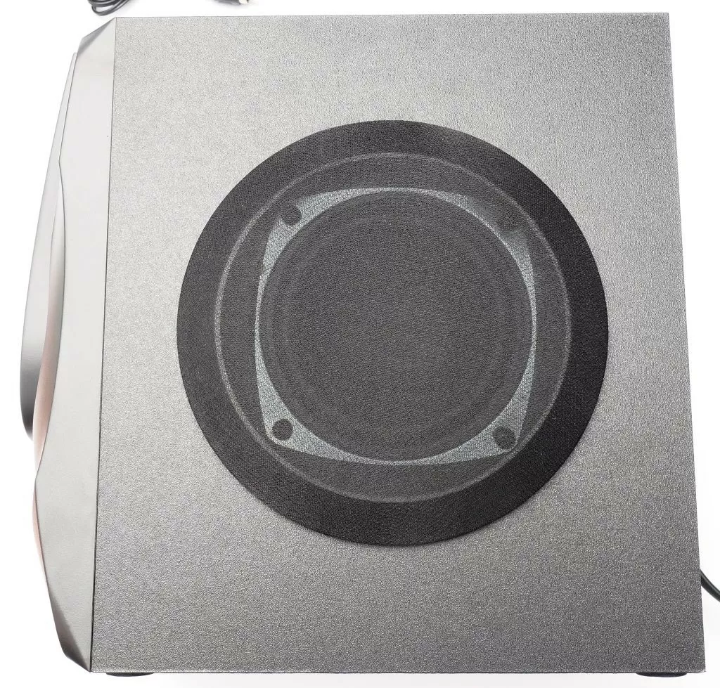 Что же касается качества звука, то тут чувствуется преобладание высоких частот – колонки «писклявые», ощущается острая нехватка средних частот. Суммарная мощность самая низкая из линейки – «всего» 23 Ватта, но система способна задать жару: если выкрутить регулятор на сабвуфере, то можно получить достаточно мощные низкие частоты. Конечно же, нужно принимать к учёту размер динамиков – 75 мм у сателлитов (2х2,5 Вт) и 95 мм у сабвуфера (18 Вт), но субъективно на максимальной громкости колонки очень громкие. Правда, звучание в целом не очень сбалансированное (как мы уже сказали, не хватает средних частот), но громкое и басистое.