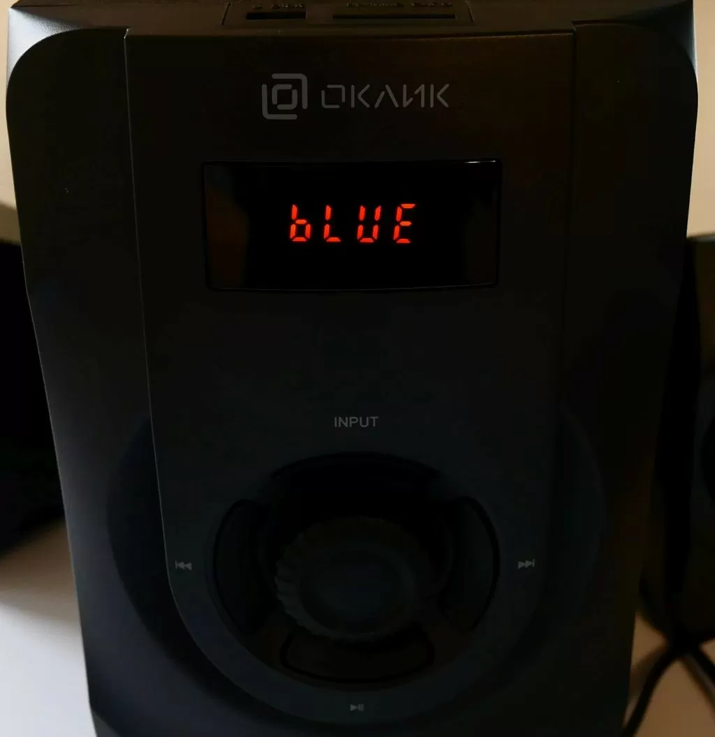 С точки зрения дизайна эта модель смотрится очень интересно, тут и сателлиты красивее, и у сабвуфера крутилка громкости (к слову – аналоговая, как у OK-430) имеет синюю подсветку по периметру, да и порт USB с SD слотом находится спереди, в удобном месте. Да и регуляторы тембров тоже находятся спереди, что опять же очень удобно.