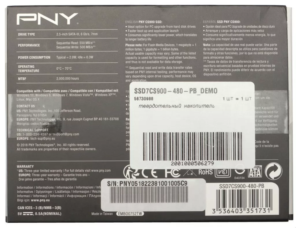 Главный плюс SSD уже давно понятен и неоспорим – скорость, в разы превышающая цифры обычных HDD, позволяющая реально увеличить скорость работы всей системы, если речь идёт о прямом сравнении HDD с SSD. Тем не менее, у SSD были и есть два главных минуса. Первый - небольшой объём, второй – высокая цена. Хотя, отчасти оба недостатка сегодня не такие явные, как это было ранее – на рынке хватает относительно доступных и ёмких моделей, позволяющих за относительно небольшие деньги полностью отказаться от жесткого диска. По крайней мере, если речь идёт об игровом компьютере, который не используется в качестве хранилища фильмов и прочей мультимедиа. Так, например, объёма 480 Гб вполне хватит и для операционной системы и для десятка-двух современных игр. Сегодня пойдёт речь об SSD бренда PNY, модель CS900 объёмом 480 Гб.