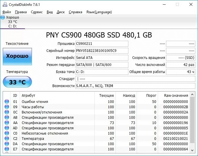 На момент написания обзора PNY CS900 SSD 480Gb можно было встретить по цене около 7500 рублей.