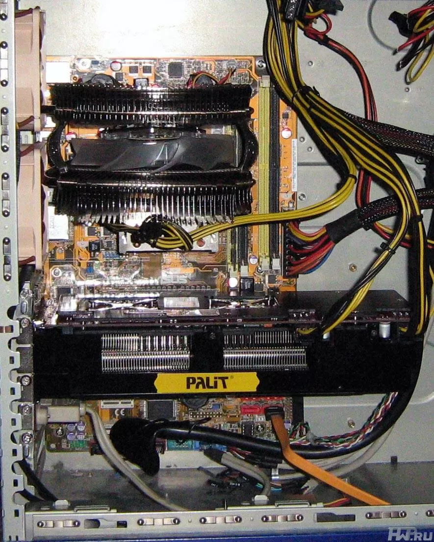 Система охлаждения получилась несколько громоздкой, видеокарта занимает два дополнительных слота ниже себя (всего три слота!), поэтому перед покупкой стоит просчитать, сможете ли вы обойтись без этих слотов на системной плате.