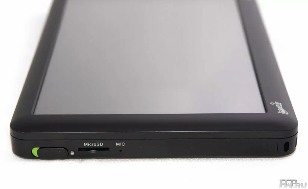 На левой стороне имеются ушко для шнурка, слот microSD и блокировка устройства. Блокировка понятно зачем нужна - чтобы исключить ложные нажатия. А вот наличие ушка для шнурка нас немного удивило. Кто будет вешать такую "бандуру" на шнурок? Разве что для подстраховки - надеть маленький ремешок на левую руку, чтобы в случае тряски не выронить плеер. Или нацепить тупой брелок, что продаются для мобильников в "Евросети" и подчеркнуть таким образом свою индивидуальность. Вот такой вариант вполне возможен (правда, возникает вопрос - зачем, но скорее всего редактор это вырежет).