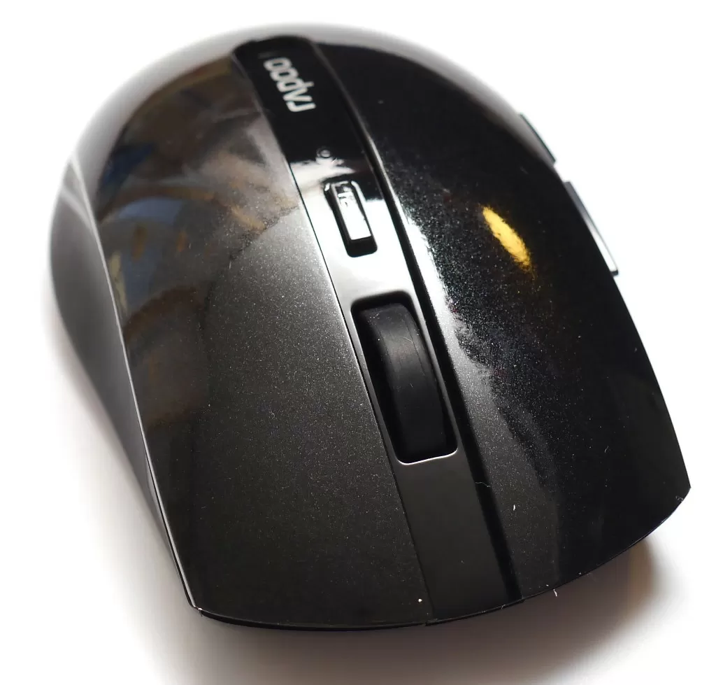 Мышка вытянутая, не очень высокая (то есть не «горбатая», как многие бюджетные беспроводные аналоги), тем не менее не смотря на относительную компактность – мышка очень эргономичная, в том числе за счёт углублений по бокам.