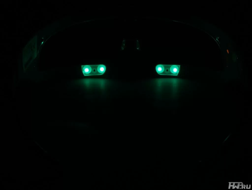 Наконец, самая интересная деталь устройства - непосредственно светодиоды. Находятся они в нижней части по две штуки на левый и правый глаз.