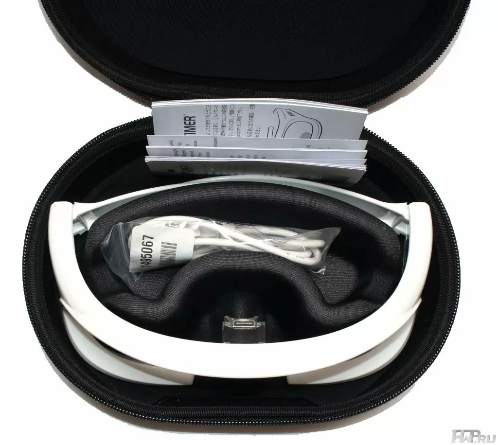 Устройство поставляется в кейсе достаточно большого размера. В подобных кейсах поставляются обычные солнцезащитные очки. Из такого же материала делаются чехлы для портативной техники (фотоаппаратов, мобильных жестких дисков). Прочный, стойкий к внешним воздействиям, с удобной молнией и большой собачкой - к кейсу претензий нет. Отличный вариант для хранения и транспортировки.