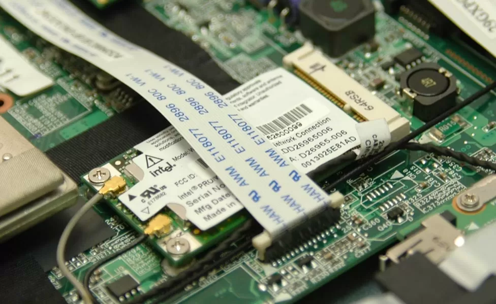 Контроллер доступа к беспроводной сети, Intel 3945, размещается ближе к передней части корпуса и занимает Mini-PCI слот. От этого контроллера отходят два проводка к антенне, которая, судя по всему, интегрирована под лицевой панелью компьютера - наилучшее расположение для домашнего ПК.
