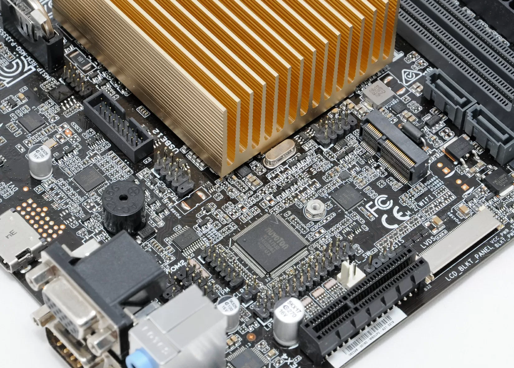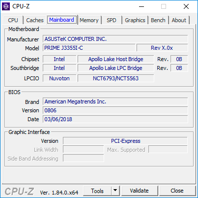 Слот PCI Express нам нужен для SATA/SAS контроллера, потому что два SATA порта Asus Prime J3355I-C в 8-дисковом NASе смотрятся несерьезно. Большинство материнских плат на Celeron J3355 имеют только один слот PCI Express 1x, а здесь тот же слот PCI Express 1x имеет форм-фактор PCI-E 4x. Это означает, что физически SAS/SATA контроллеры с интерфейсом PCI Express 4x/8x встанут на материнку, но их скорость будет ограничена шиной PCI-E 1x (500 Мб/с), что для нашего NAS погоды не делает.