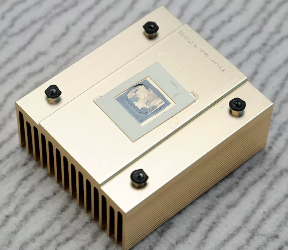 Демонтаж радиатора показывает, что термопаста на кристалле давно засохла, и быстренько оттерев её остатки, наносим Titan TTG-G30015. Этот шаг дает нам снижение максимальной температуры CPU на 3 градуса на открытом стенде, но вот что интересно - даже когда датчики показывают 63 градусов на ядре, радиатор не нагревается выше 43 градусов, а значит менять кулер или ставить на него вентилятор не нужно.