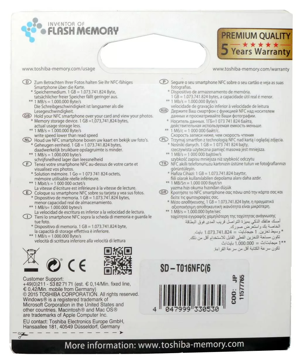 Внешне Toshiba SDHC NFC практически ничем не отличается от любой другой SDHC карточки. Единственное, на ней имеется уникальный QR код, который нужен для фирменного приложения. Вес, габариты, толщина – всё вполне стандартное, нет никаких отклонений.