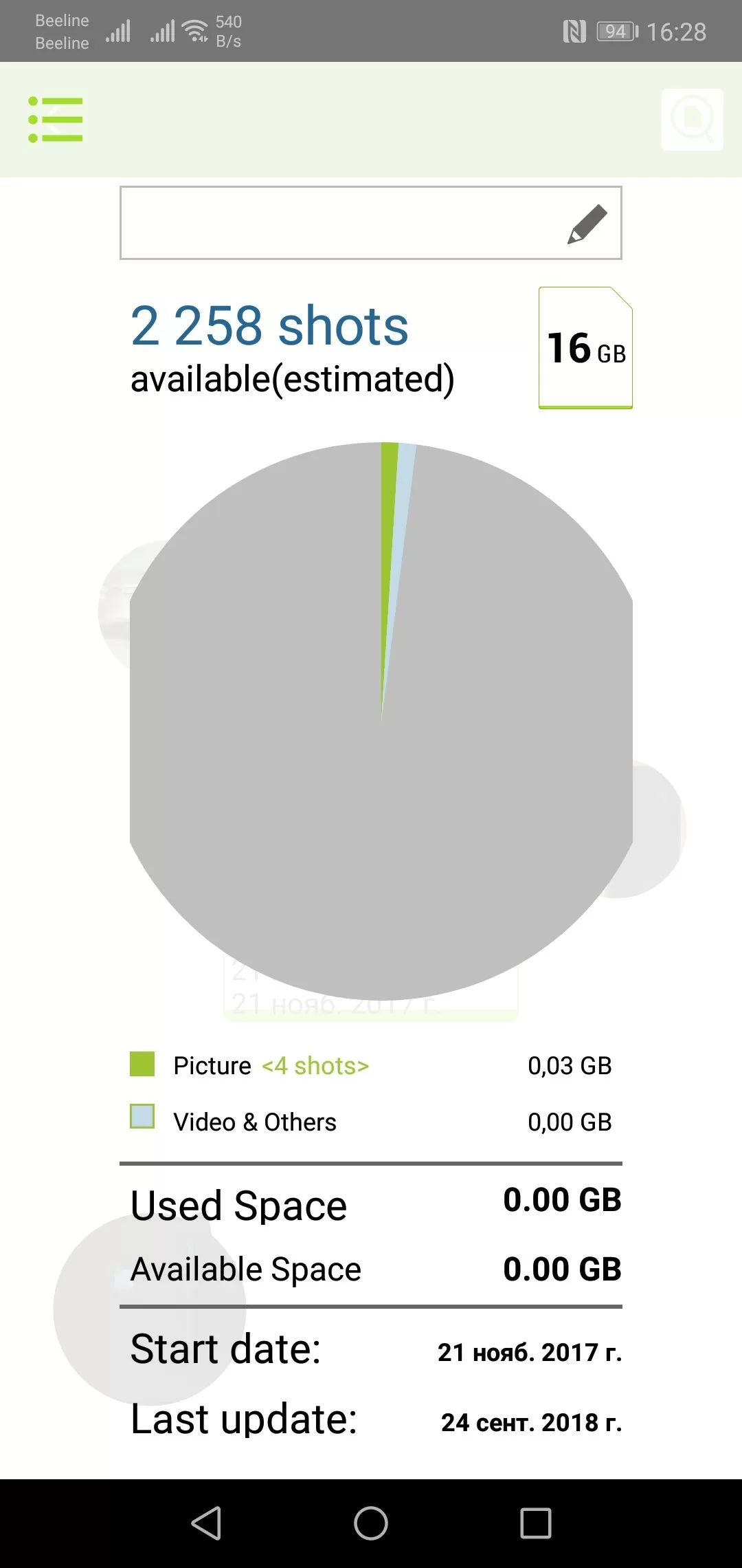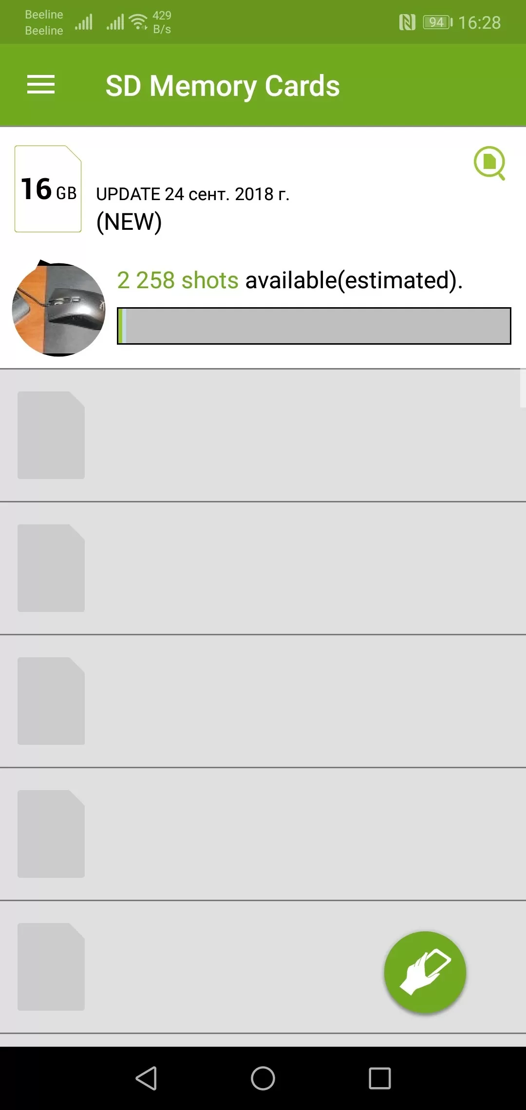 Для того, чтобы воспользоваться главной фишкой Toshiba SDHC NFC, необходимо установить на смартфон фирменную программу Memory Card Preview. Стоит только поднести карточку к NFC модулю смартфона – как программа считывает содержимое карты и выводит его на экран смартфона. Пользователю доступна информация о свободном объёме (также ПО предсказывает сколько ещё фотографий уместится на накопителе), информацию о количестве и типе записанной информации. Причём программа умеет выводить миниатюры фотографий из папки DCIM, в которую и записывают материал современные фотоаппараты. Программа хранит информацию о 20 карточках, то есть в любой момент можно не доставая карту посмотреть на смартфоне на какой карточке сколько осталось свободного места. И для большего удобства - можно навести камеру смартфона на карточку, и программа сразу покажет информацию о ней.