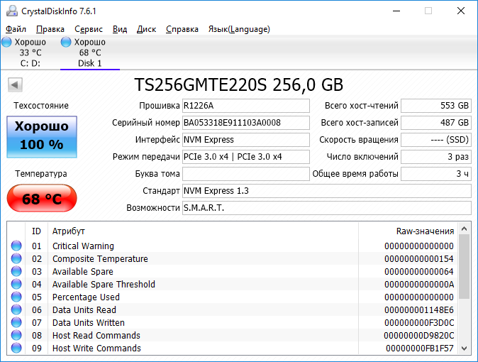 Обзор PCIe NVMe SSD Transcend MTE220S на 256 ГБ