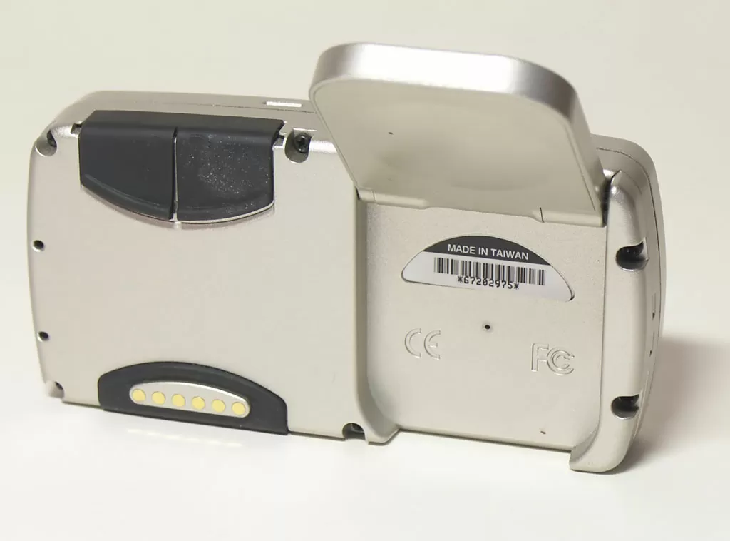 С обратной стороны устройства установлена откидная антенна, которая в походном режиме может прятаться в свою нишу. Благодаря этому даже со сложенной антенной навигатор легко умещается в кармане. Так же на фотографии обратной стороны навигатора мы видим две резиновые заглушки, закрывающие USB гнездо и гнездо для подключения внешней антенны. Нижний ряд шести золотистых пятачков - это ни что иное, как контакты питания. Из-за такой их компоновки заряжать прибор можно только в специальных док-станциях, поставляемых в комплекте. К слову сказать, установить Quest в эти док-станции непросто...