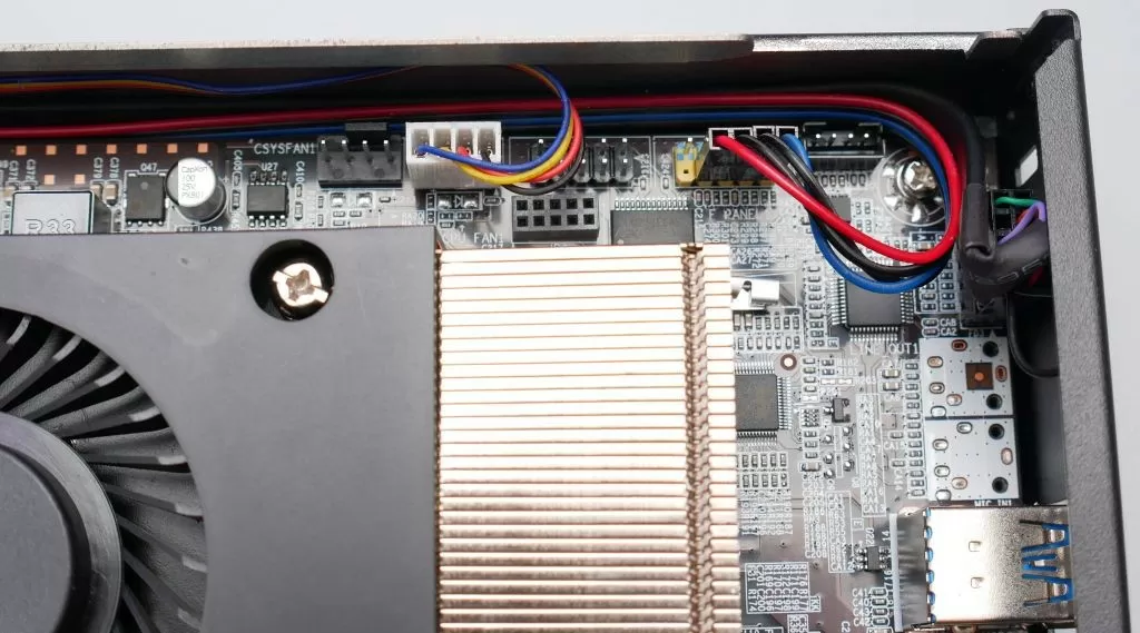 Пожалуй, единственное что нужно отнести к особенностям, а возможно, к недостаткам – охлаждение. Всё же нужно быть объективным – кулер не очень большой, а тот же Ryzen 3 2200G имеет TDP 65 Вт, и столько тепла маленькому кулеру рассеять не так легко. При нагрузке чувствуется заметный нагрев неттопа, некоторый шум от кулера, а температура процессора нередко достигает 65 градусов. Разумеется, конкретные цифры зависят, во-первых, от настроек скорости вращения кулера (смотря чем мы готовы пожертвовать – температурой CPU или уровнем шума кулера), во-вторых, от текущей нагрузки на процессор. При небольшой нагрузке, например, сёрфинге в Интернете или просмотре кино вполне не сложно получить практически бесшумную работу миниПК.