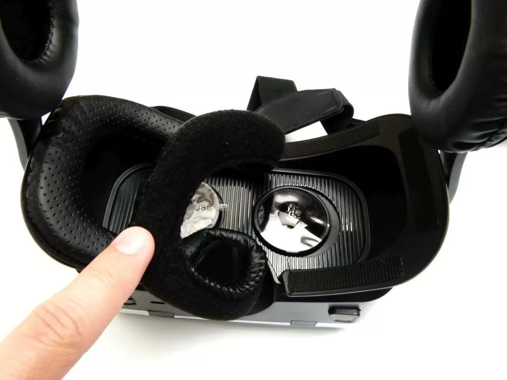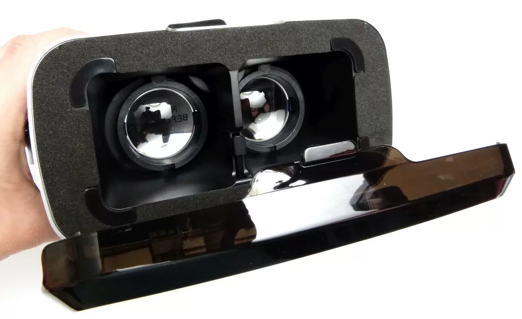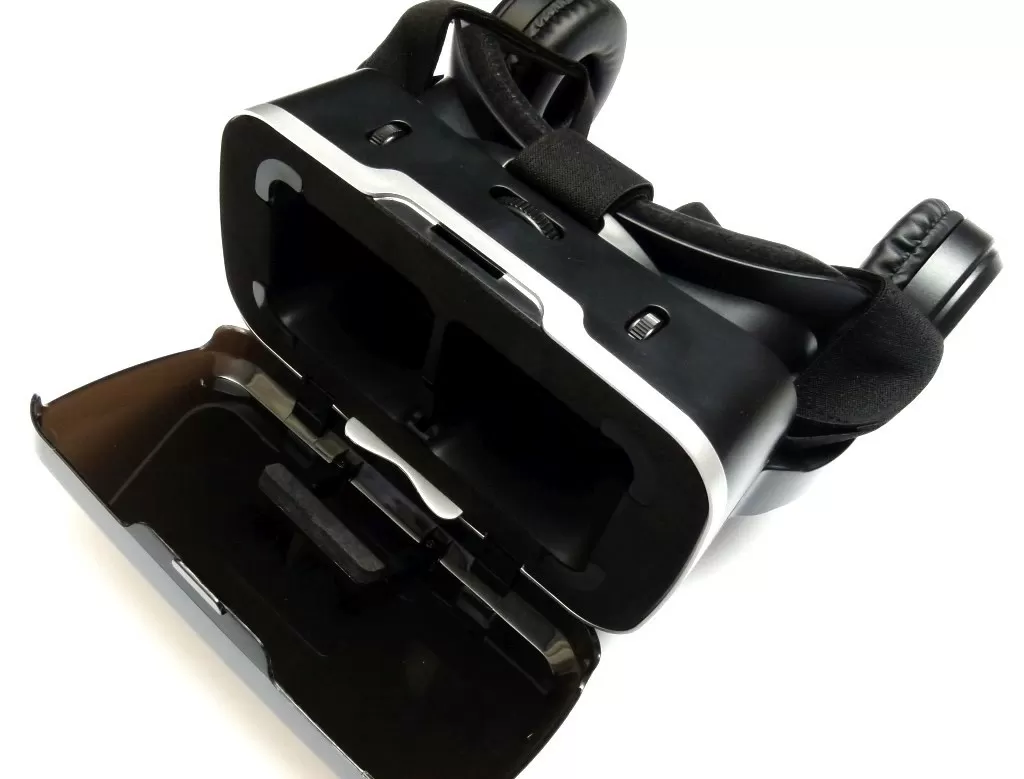 Сами очки Hiper VR Max имеют вполне привычный дизайн – основные конструктивные элементы такие же, как у большинства конкурентов, тут нет смысла что-то придумывать новое. Главное, что тут есть полноценная регулировка положения линз в двух плоскостях, потому что без тонкой подстройки невозможно получить полноценное 3D изображение, ведь анатомия у всех людей разная. Сверху на очках находятся регуляторы, а снизу – кнопки управления и порт microUSB для зарядки наушников. Смартфон устанавливается за откидной крышкой, тут особенно радует наличие уплотнителя и мягких материалов, которые будут надежно удерживать смартфон, не царапая его. В Hiper VR Max можно установить смартфон с диагональю экрана от 4,7 до 6,2 дюймов и соотношением сторон 18:9, 19,5:9 и 21:9.