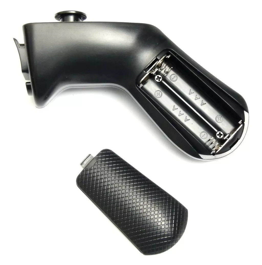 Теперь посмотрим на джойстик. Он достаточно компактный, для использования одной рукой, и выглядит как маленький джойстик без базы (который используется в авиасимуляторах) – даже кнопки есть как под большим пальцев, так и под указательным (как кнопки огня). Всего 4 кнопки и один стик. Не забудьте установить пару мизинчиковых батареек, в комплекте их нет.
