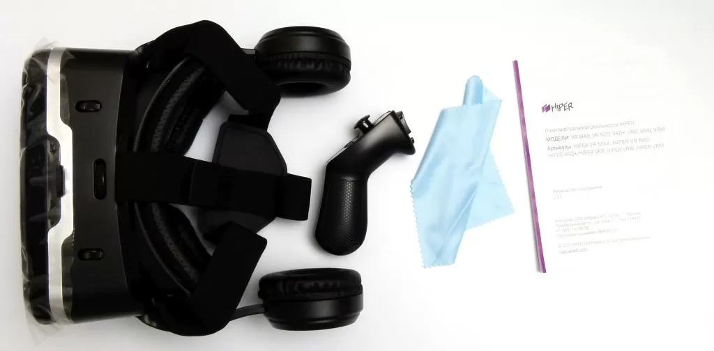 Очки поставляется в картонной коробке внушительных размеров. Комплектация включает всё вышеперечисленное – очки, беспроводной джойстик, а также тряпочку для протирки линз и документацию. Очень странно, что в комплекте нет хотя бы кабеля microUSB, не говоря уже о комплекте батареек, без которых джойстик не заработает.