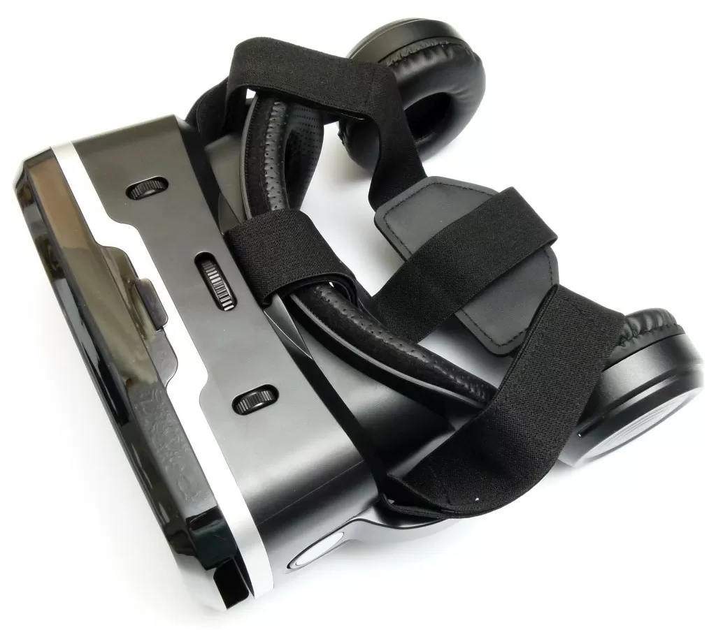 Фиксация на голове осуществляется с помощью стандартных ремешков, но в отличие от дешёвых конкурентов тут есть и несъёмные накладные наушники, они подключаются к смартфону по Bluetooth, аккумулятора хватает на 10 часов работы, и конечно можно было бы посетовать – почему производитель не поставил обычные проводные наушники, которые не пришлось бы заряжать вовсе. Но когда вспоминаешь что у разных смартфонов разное расположение аудиовхода, да у многих современных смартфонов вообще может не быть обычного 3,5 мм гнезда, то претензии сразу снимаются. Претензий же к эргономике нет вовсе – есть выемка под нос, длина ремешков регулируется – нужно лишь перед использованием настроить всё под себя и можно пользоваться очками часами.