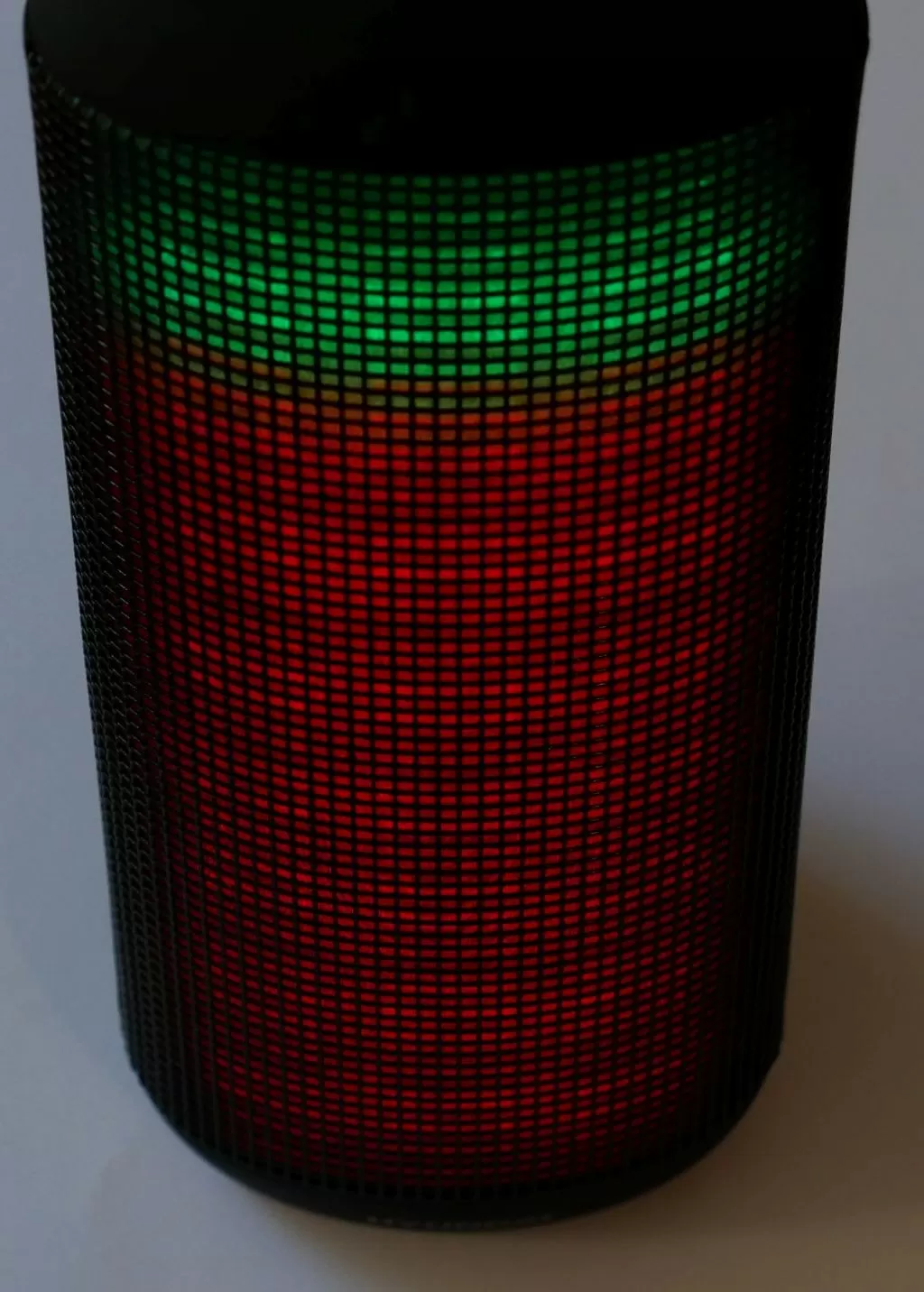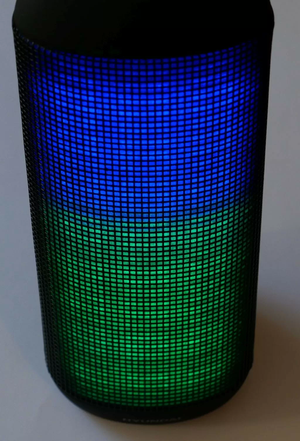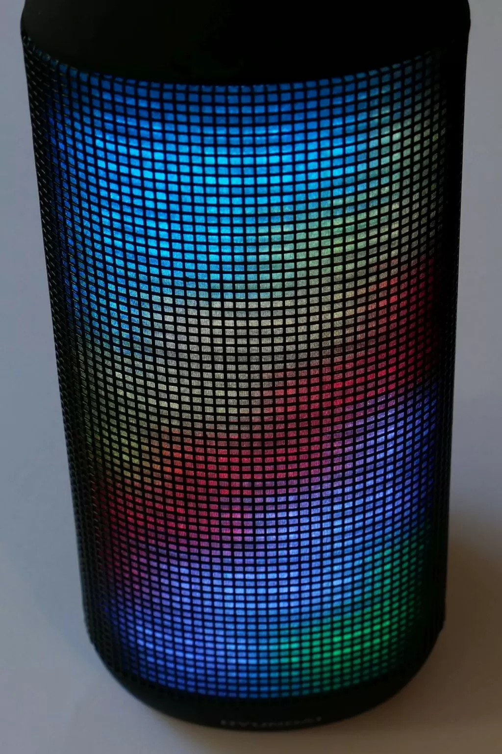 Возвращается к колонке. Первое что бросается в глаза при её включении – встроенная подсветка. Да, она действительно красивая, многозонная, многоцветная, есть несколько режимов настройки (переливы, эквалайзер и т.п.). Ну а если вдруг светомузыка вам не нужна – подсветку можно отключить. Хотя, на наш взгляд, грех этой фишкой не наслаждаться. Ещё и полезных фишек – водозащита по стандарту IPX4, то есть колонкой можно смело пользоваться на улице и не бояться внезапного дождя или скажем случайного падения в лужу.