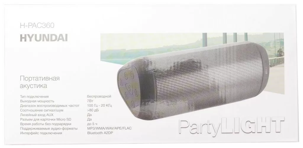 Hyundai выпустил целую линейку новых Bluetooth-колонок самого разного размера, мощности и дизайна. Одна из ключевых фишек некоторых новых моделей – наличие встроенной разноцветной подсветки. И сегодня у нас на тесте Hyundai H-PAC360 – среднеразмерная колонка мощностью 7 Вт с RGB LED подсветкой стоимостью около 3 тысяч рублей.