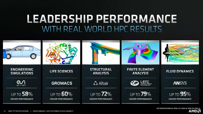 Сегодня с уверенностью можно сказать, что астрологи объявили 2019 год - годом AMD. Компания празднует один успех за другим, процессоры Ryzen для настольных ПК выбиваются в лидеры по продажам среди энтузиастов, чиплетная компоновка позволяет выпустить 1-сокетный сервер с 64 ядрами, серверные процессоры EPYC с ядром Rome устанавливают один мировой рекорд производительности за другим, недавно пополненные результатами рендеринг-бенчмарка Cinebench, а всего таких рекордов уже набралось более сотни (это, кстати, тема для отдельной статьи). Вот некоторые любопытные сравнения из маркетинговых материалов AMD: