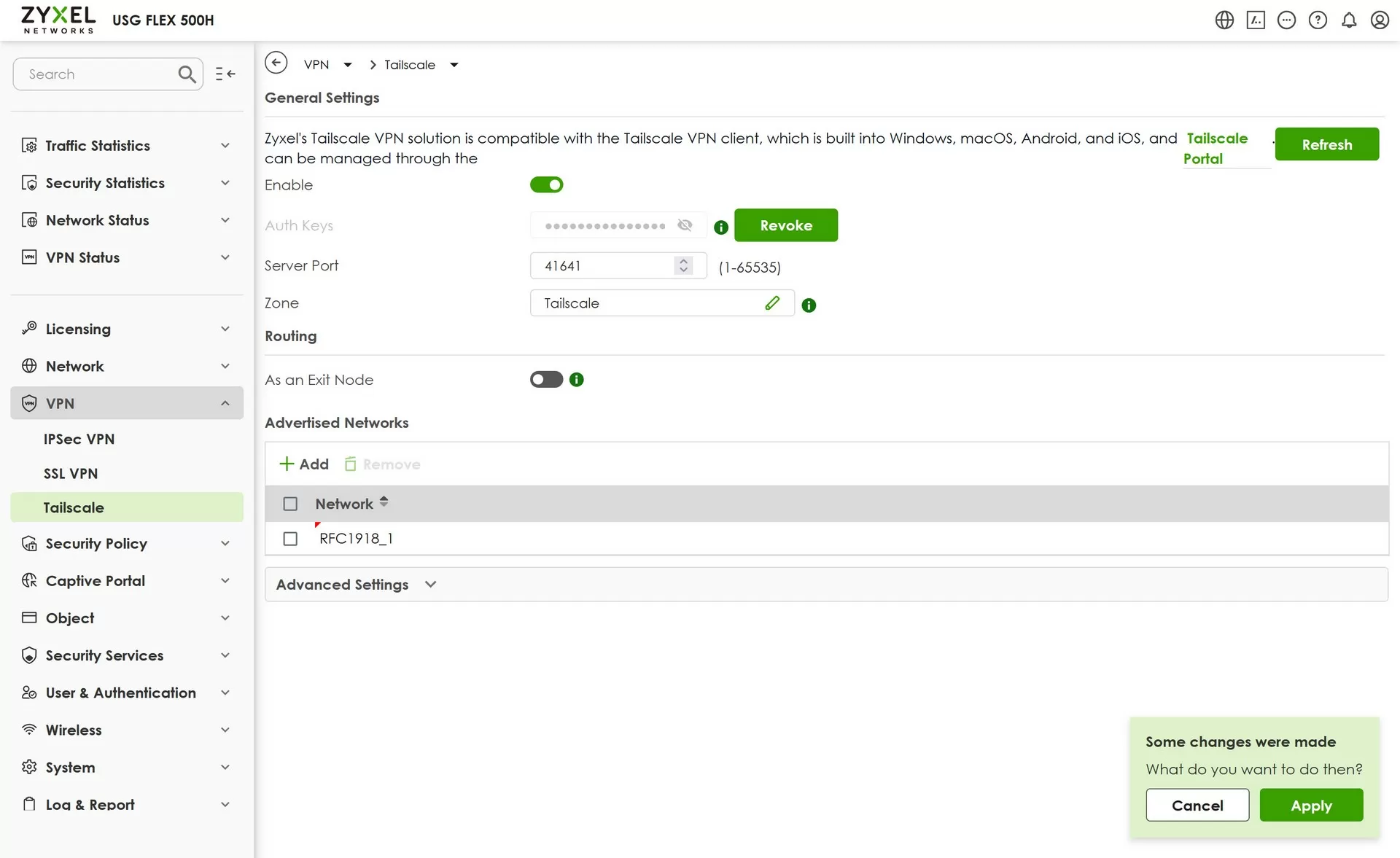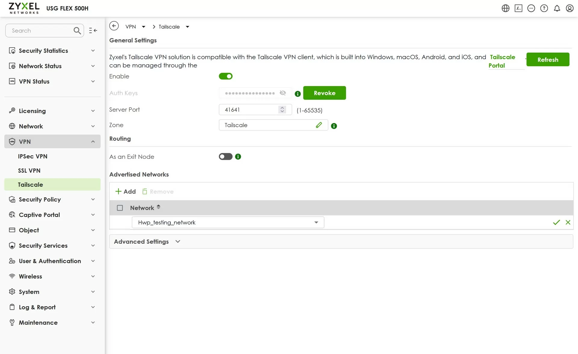 Настройка Tailscale на шлюзе Zyxel USG Flex 500H