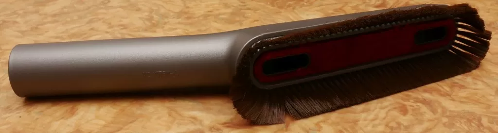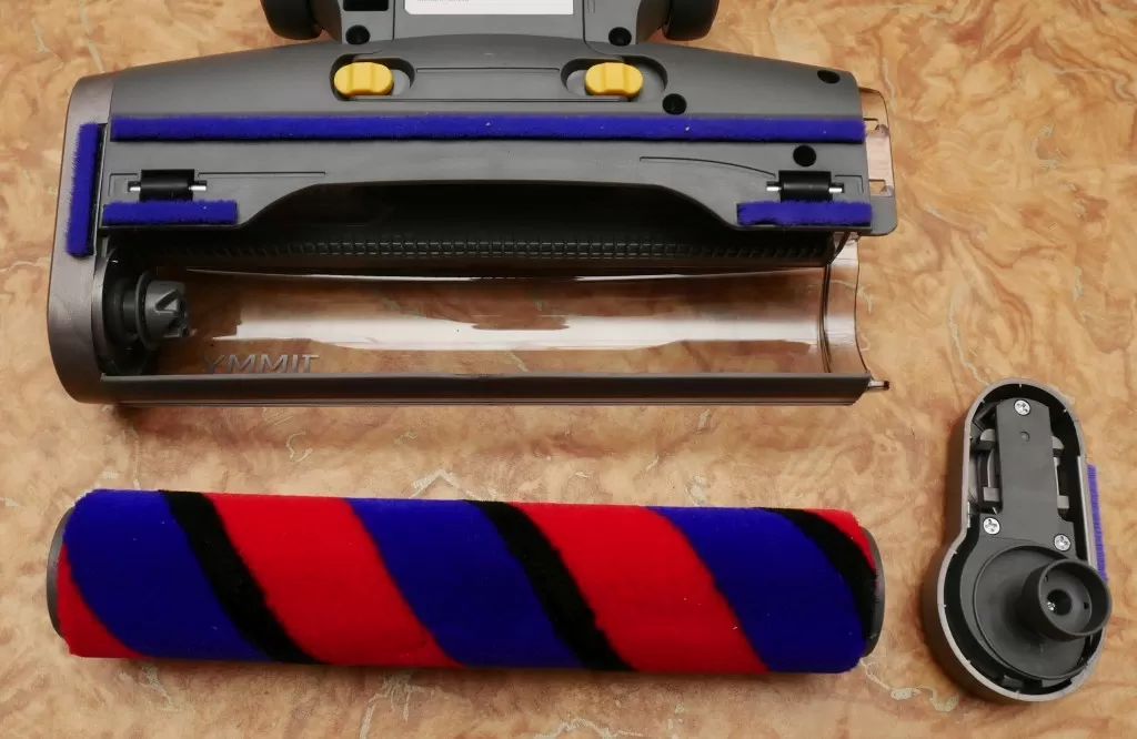 Больше всего из комплекта нас интересовала главная насадка – дело в том, что у неё используется крайне интересная турбощётка, которая по заявлениям производителя не собирает волосы (зрительно она напоминает валик для краски, но конечно же материалы другие). Это я проверю чуть позже, а пока же отметим разборную конструкцию – щётку можно вынуть для очистки.