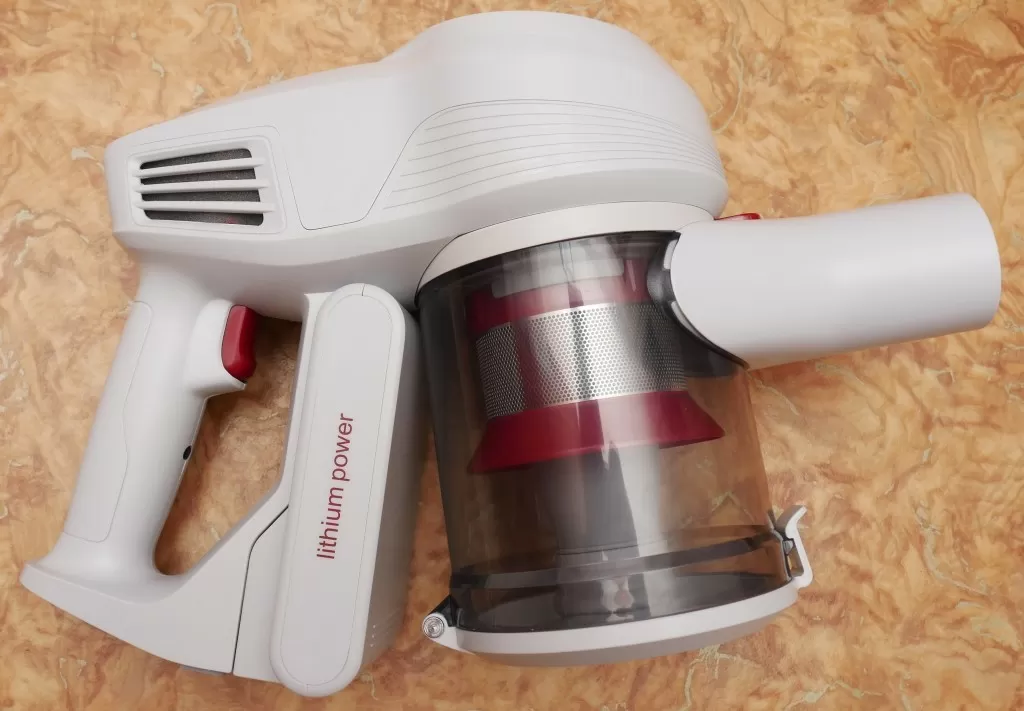 JIMMY JV51 имеет более привычный дизайн с пистолетной ручкой. Что сразу же выделяет эту модель на фоне более дорогого H8 Pro, так это материалы и сборка. Но самое главное, что в руке пылесос ощущается добротным и не дешёвым. Кнопка включения – дискретная, то есть её не надо держать пока пылесос работает. Нажали – пылесос включился, нажали ещё раз – выключился. Есть переключатель режима работы (всего две мощности), а вот дисплея – нет, но для этой ценовой категории это вполне ожидаемо.