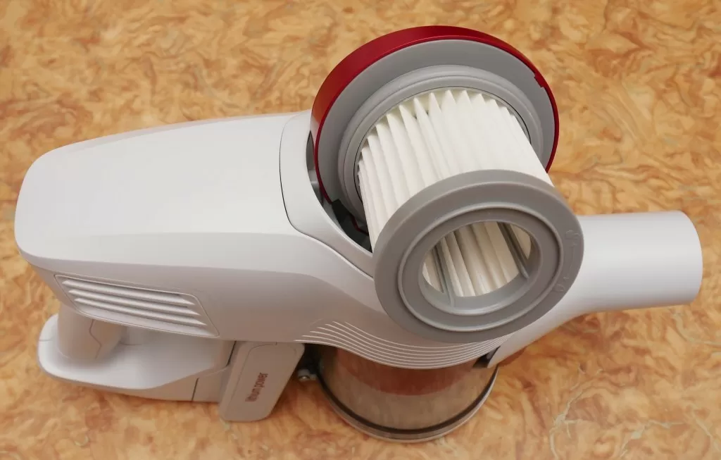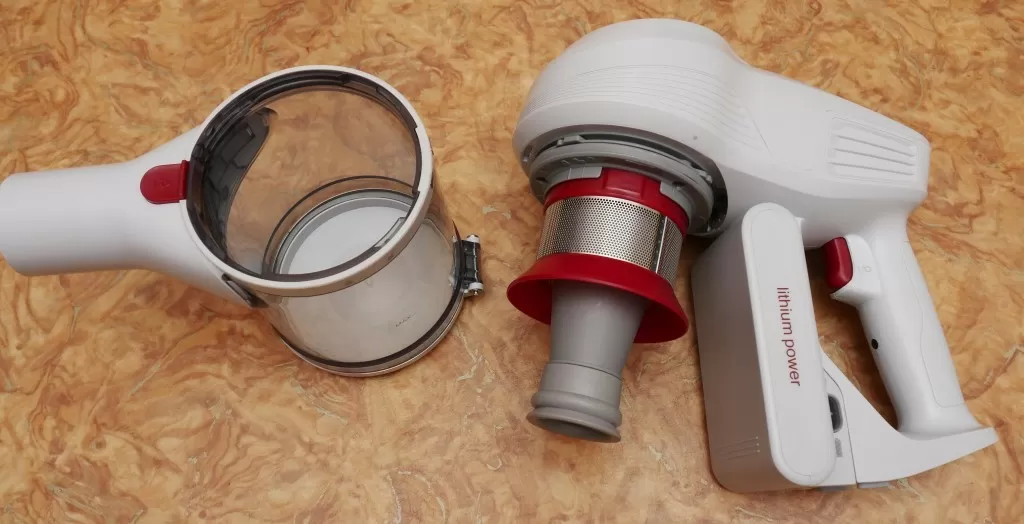 Разбирается пылесос крайне просто, даже не обязательно открывать инструкцию. Сверху легко и просто вынимается HEPA фильтр. Пылесборник ёмкостью 500 мл открывается снизу, а при желании его можно снять целиком, чтобы получить доступ к металлическому ячеистому фильтру (например, для его очистки). На всё про всё уходят секунды времени, так что опустошение контейнера и очистка пылесоса после уборки займёт минимум времени.