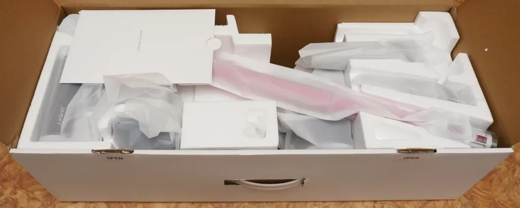 Несмотря на то, что JIMMY JV51 в два раза дешевле H8 Pro, пылесос упакован также стильно и богато. Каждый компонент находится в индивидуальном пакетике, содержимое коробки упаковано очень плотно, так что распаковка превращается в особый ритуал. Приятный ритуал.