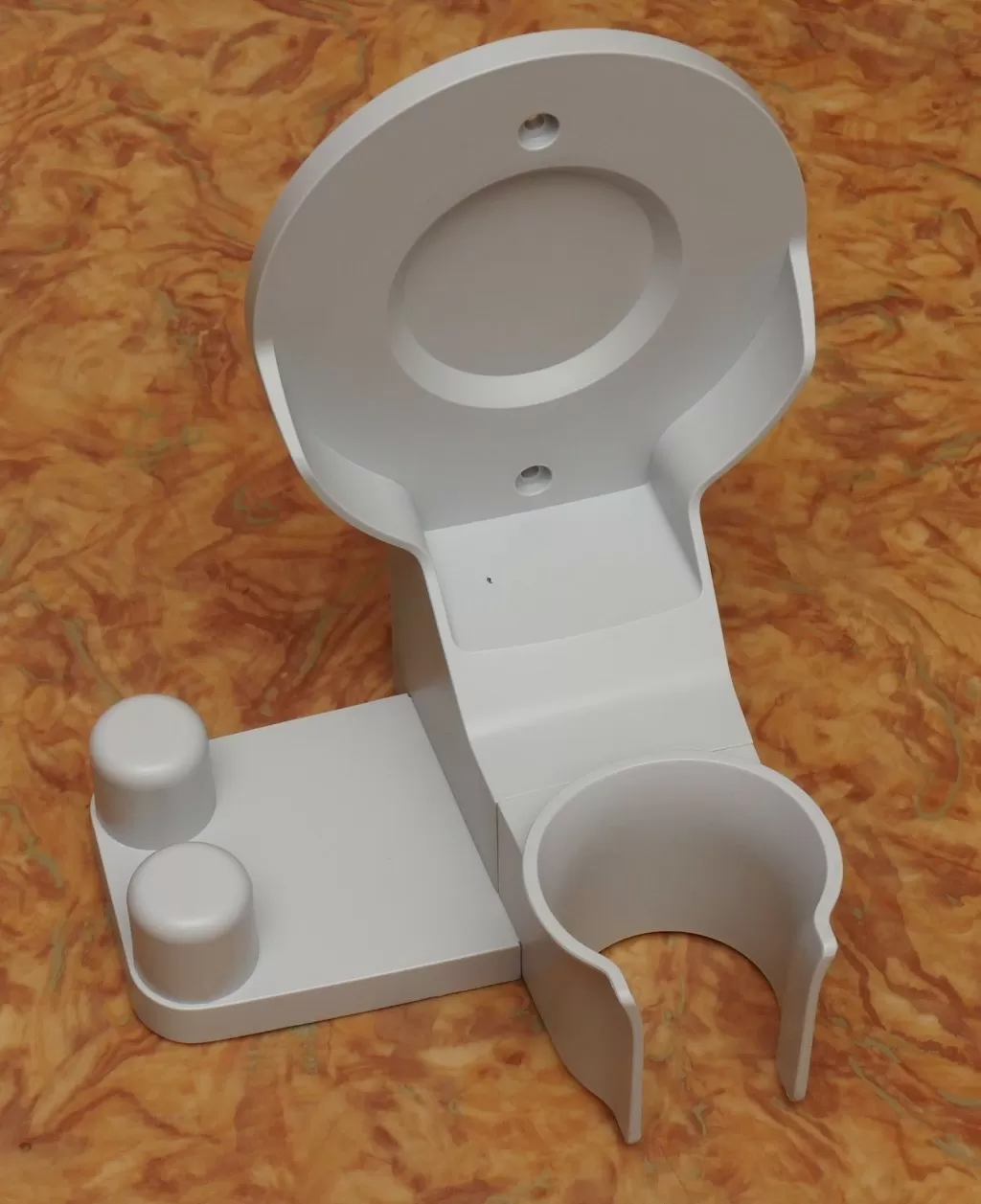 И так, начинаем извлекать из коробки её содержимое и внимательно рассматривать комплектацию. Однозначно в плюсы можно записать наличие подставки, точнее настенного крепления. Если у H8 Pro была напольная подставка, то тут предлагает вешать пылесос на стену (в комплекте конечно же идёт набор крепежа). Два выступа слева – это поставки для щёток.