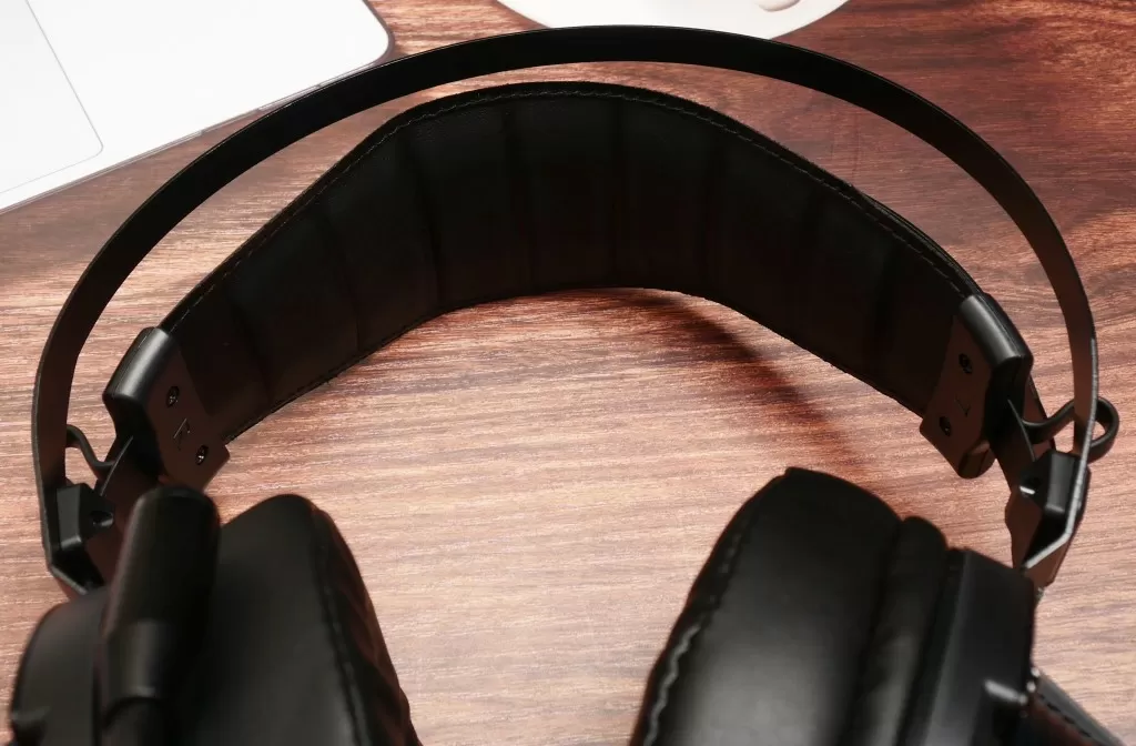 ABKONCORE B500M – это очень крупная модель. Оголовье – с автоматической регулировкой. Основа – металлическая, а та часть, что соприкасается с головой – покрыта кожзамом. Амбушюры – из того же материала. Они очень крупные, настолько большие, что уши взрослого человека внутри просто теряются. Наполнитель амбушюр толстый, но достаточно мягкий.