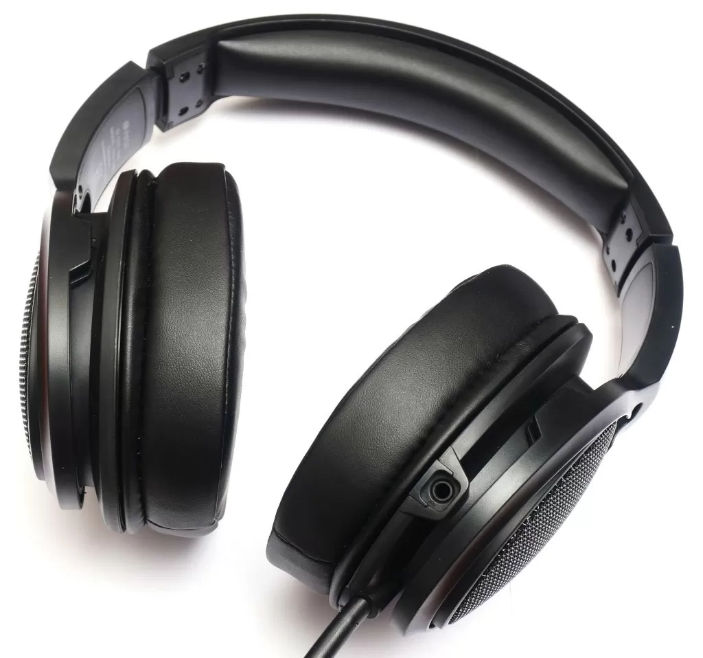 Теперь что касается личных впечатлений. Первое – эргономика. Оголовье с ручной регулировкой, прижим не слабый, но как мы уже говорили выше – наполнитель амбушюр распределяет давление. Единственное, из-за кожзама уши могут потеть при длительных посиделках за компьютером, всё же вентиляция ушам не помешала бы.