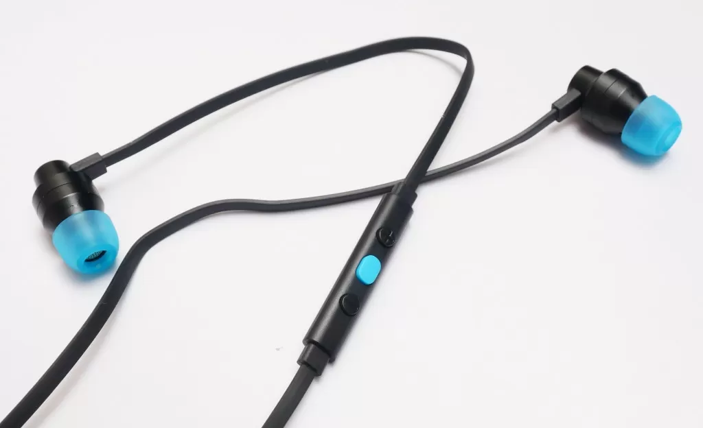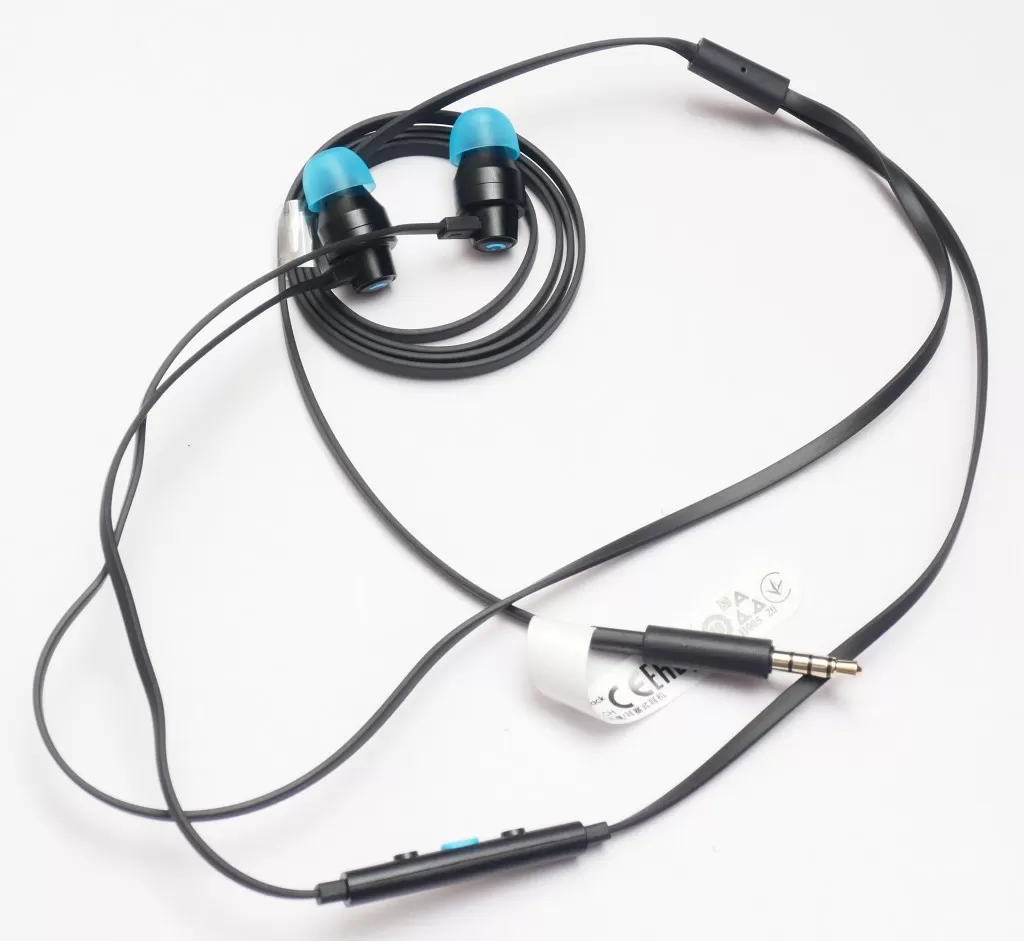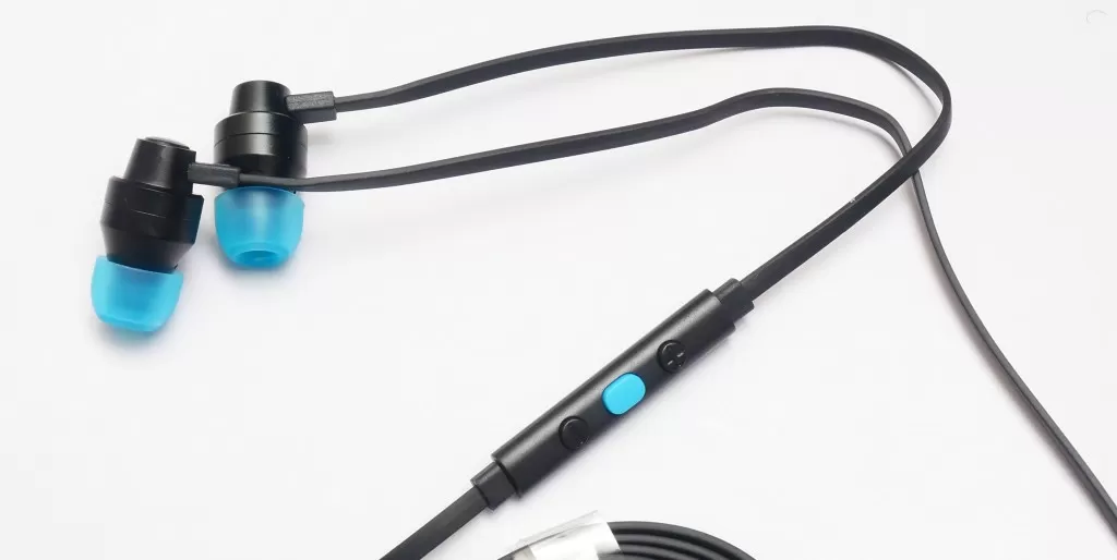 Насадки – весёлого голубого цвета, они разбавляют строгую монополию черного цвета. Кабель – так называемая «лапша» - он плоский, потому почти не путается, и в использовании очень удобен. Рядом с левым наушником есть пульт с микрофоном, причём на пульте аж три кнопки – две для регулировки громкости и одна для «Play/Pause», перелистывания треков и вызова голосового помощника. Сама гарнитура имеет четырёх пиновый штекер 3,5 мм, а значит её можно подключить к смартфону, планшету, ноутбуку и обычному компьютеру (но если аудиовход будет обычный, для подключения наушников, а не для гарнитуры, то микрофон задействован не будет).